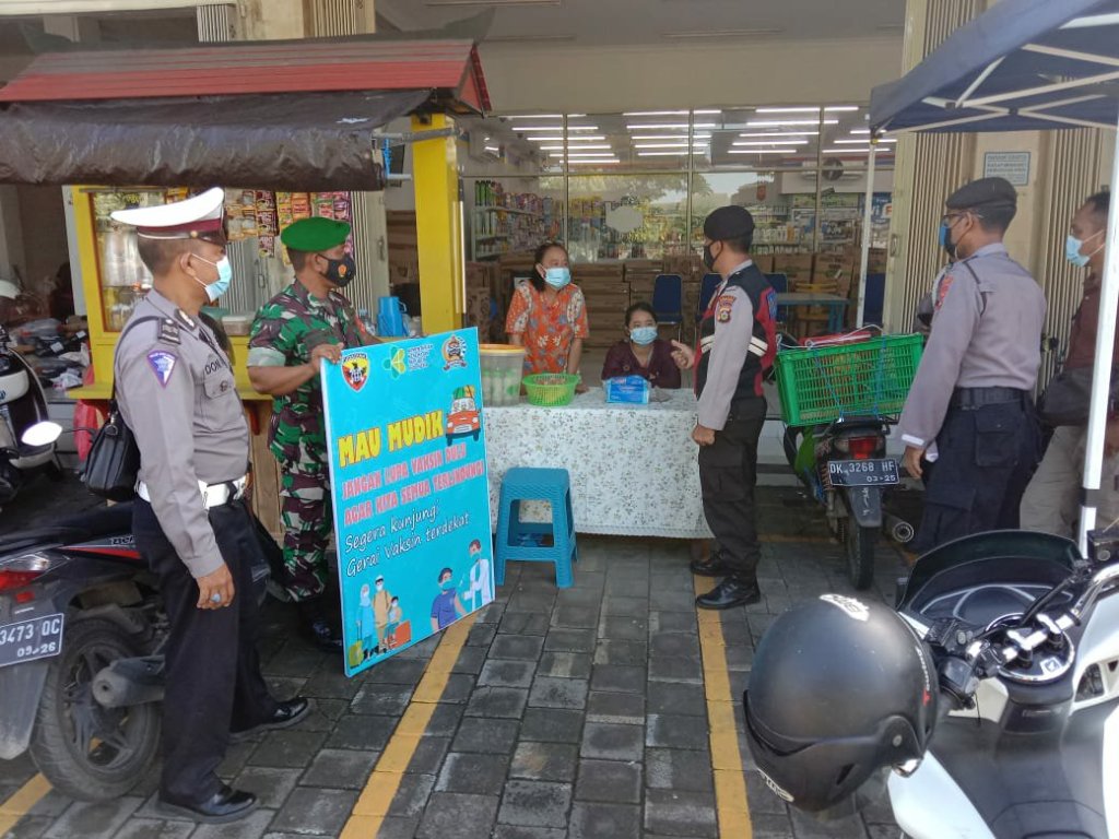 Selain menghimbau masyarakat untuk mematuhi protokol kesehatan, petugas pun gencar melakukan sosialisasi agar masyarakat untuk memiliki kesadaran mengikuti vaksinasi Covid-19. Terpantau petugas juga membentangkan Banner sebagai sarana sosialisasi vaksinasi.
