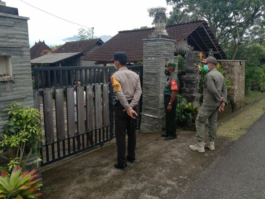 Jembrana – Babinsa Desa Banyubiru Koramil 1617-01/Negara Serda Koloman memberikan pendampingan saat Tim Tracer Desa Banyubiru melakukan testing dan tracing kontak erat terhadap beberapa orang warga. Testing dan tracing kontak erat dilakukan setelah adanya salah satu warga yang terkonfirmasi Positif Covid-19, Rabu (20/04/2022).