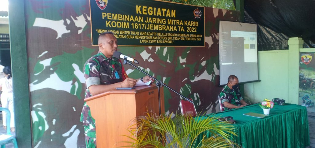 Jembrana – Kodim 1617/Jembrana menggelar kegiatan Pembinaan Jaring Mitra Karib Tahun 2022 yang berlangsung di Makodim 1617/Jembrana Jalan Ngurah Rai No.135 Negara. Acara dibuka oleh Dandim 1617/Jembrana Letkol Inf Hasrifuddin Haruna, S.Sos.