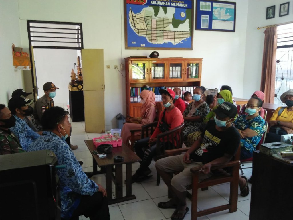 Jembrana – Babinsa Kelurahan Gilimanuk Koramil 1617-03/Melaya menghadiri sosialisasi dan pendataan terhadap para pedagang di Kantor Kelurahan Gilimanuk. Sosialisasi serta pendataan dilakukan oleh pihak Kelurahan Gilimanuk kepada para pedagang asongan dan pedagang kaki lima di sepanjang jalan raya Gilimanuk.