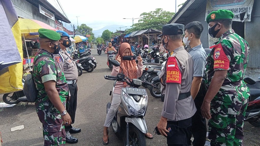 Jembrana – Kodim 1617/Jembrana bersama instansi terkait terus berupaya mendukung pemerintah dalam rangka menegakkan disiplin Protokol Kesehatan terhadap masyarakat. Melalui Koramil Jajarannya secara rutin melakukan pendisiplinan protkes diberbagai tempat dengan memberi himbauan kepada warga yang ditemui untuk selalu memakai masker saat berada di luar rumah, rajin cuci tangan sebelum dan sesudah beraktifitas.