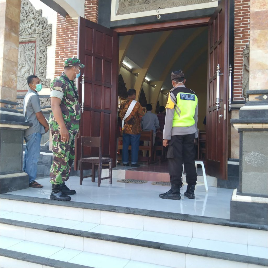 Jembrana – Melandainya kasus warga terkonfirmasi positif Covid-19 tidak menjadikan Babinsa Desa Gumbrih Koramil 1617-04/Pekutatan, Kodim 1617/Jembrana Pelda I Ketut Suburyana kendor dalam menegakan disiplin protkes. Bersinergi dengan Bhabinkamtibmas, bersama pihak keamanan gereja Babinsa Desa Gumbrih berperan aktif memberikan edukasi dan mengajak warga untuk patuh protokol kesehatan saat melaksanakan kegiatan peribadatan.