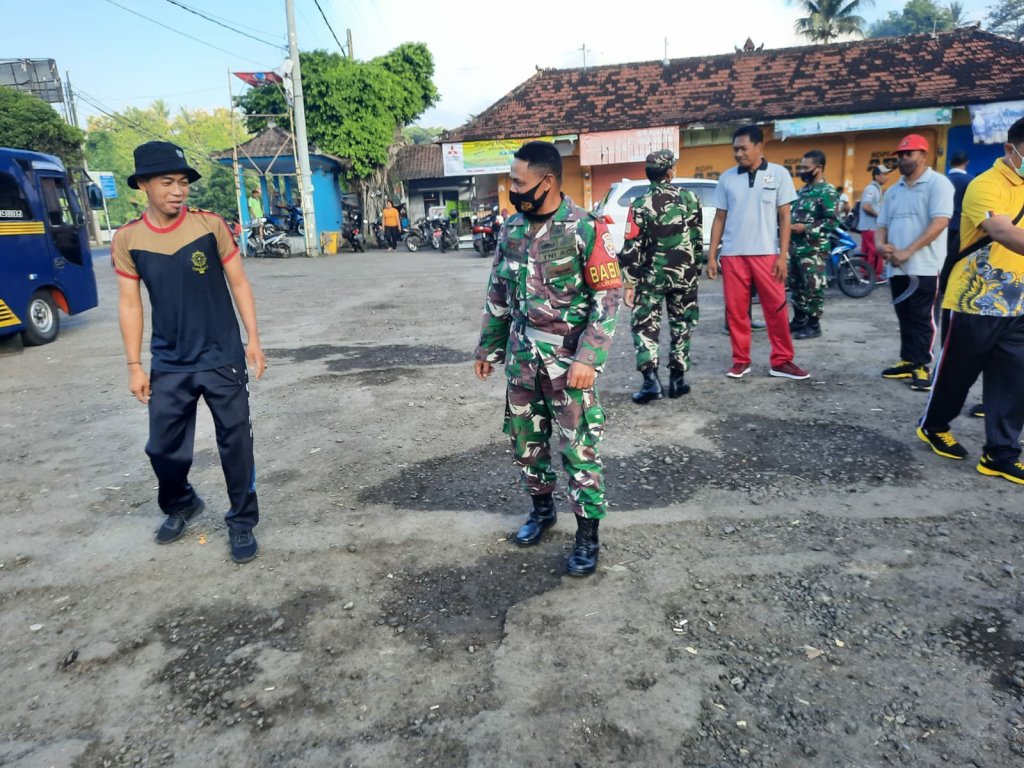 Jembrana – Danramil 1617-03/Melaya bersama anggota mengikuti gotong royong pembersihan di Pasar Umum Melaya. Digelarnya aksi pembersihan sampah oleh Pemerintah Kecamatan Melaya bersama instansi terkait dalam rangka pencanangan Bulan Bhakti Bung Karno tahun 2022.