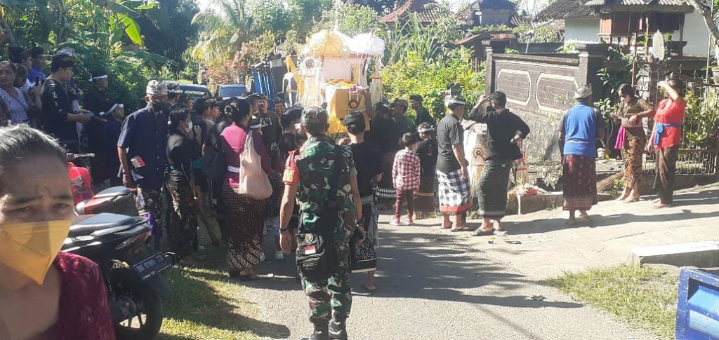 Dikatakan oleh Serda Suwardi, dirinya bersama aparat terkait secara rutin terus melakukan himbauan kepada warga agar selalu mematuhi protkes. Hal tersebut sebagai upaya pencegahan penyebaran Covid 19 di wilayah binaannya. Selain itu dirinya juga bersama Bhabinkamtibas dan Pecalang membantu mengatur lalu lintas untuk kelancaran proses pengabenan.