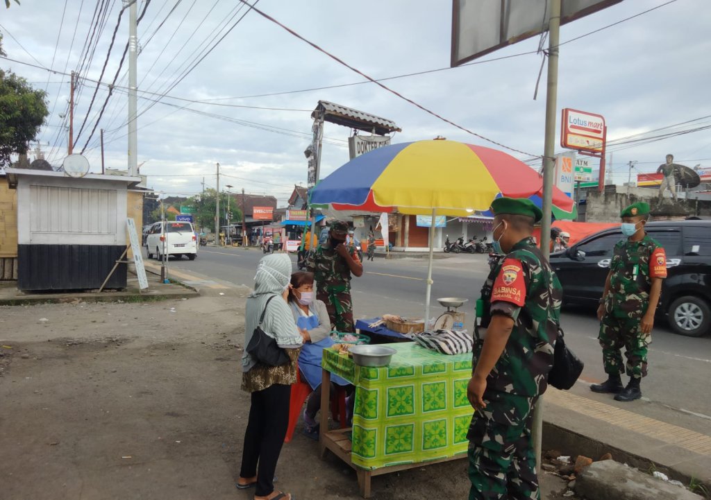 Kali ini, pendisiplinan dilakukan menyasar pusat aktivitas masyarakat maupun tempat yang memungkinkan menimbulkan kerumunan di Pasar Umum Tegalcangkring, Lingkungan Baler Bale Agung, Kel. Tegalcangkring, Kecamatan Mendoyo, Kabupaten Jembrana. Terpantau personel gabungan dari Koramil 1617-02/Mendoyo bersama Polsek Mendoyo terus memberikan himbauan dan edukasi pentingnya protkes kepada masyarakat, Jum’at (03/06/2022)