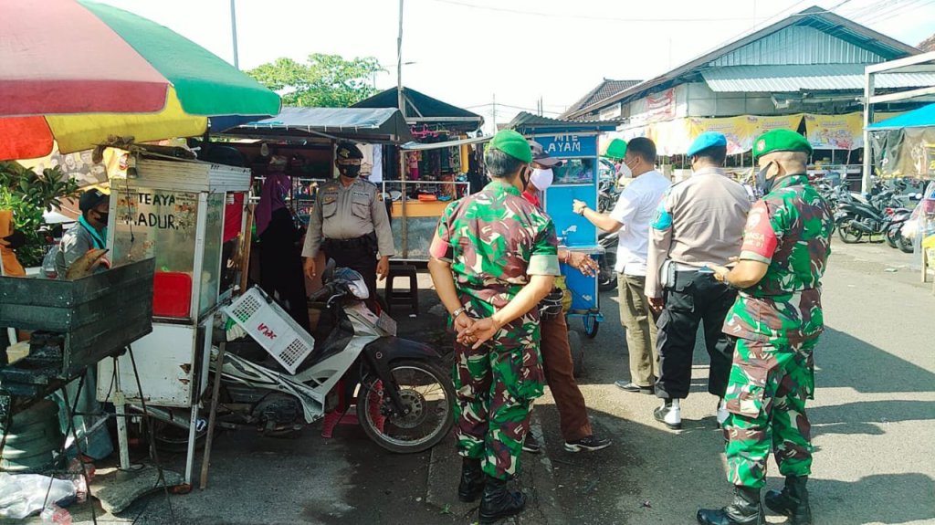 Kali ini patroli bersama pendisiplinan Protkes digelar dengan menyasar pasar tradisional Kelurahan Banjar Tengah. Secara humanis Personel Koramil 1617-01/Negara bersama Personel Polsek Negara menghimbau para pedagang maupun pengunjung yang sedang melaksanakan aktivitasnya agar senantiasa mematuhi protokol kesehatan diantaranya untuk selalu menggunakan masker, mencuci tangan, menjaga jarak, mengurangi mobilitas dan interaksi serta menghindari kerumunan guna mengantisipasi penularan dan penyebaran Covid-19.