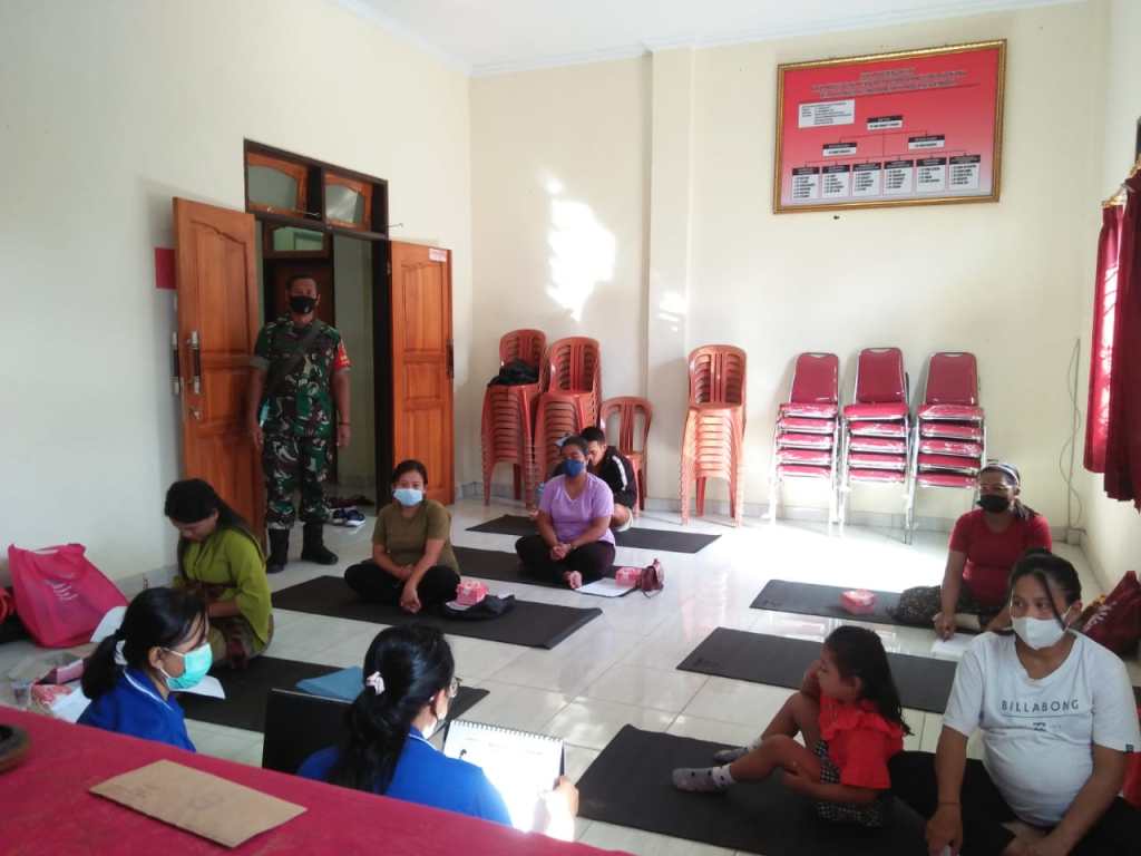 Seperti halnya yang dilakukan oleh Babinsa Pohsanten Koramil 1617-02/Mendoyo Pelda IB Priada saat berlangsungnya senam untuk ibu hamil yang diselenggarakan oleh petugas kesehatan dari Puskesmas II Mendoyo berkerjasama dengan Bidan Desa Pohsanten. Babinsa pun turut memberikan pendampingan sekaligus mengajak ibu ibu hamil yang mengikuti senam agar senantiasa menjaga kesehatan dan mematuhi protokol kesehatan.