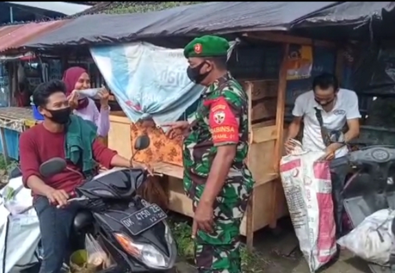 Jembrana – Pasar tradisional menjadi pengawasan dan pendisiplinan prokes oleh TNI Polri di wilayah Kabupaten Jembrana. Dimana pasar tradisional sebagai salah satu pusat aktivitas masyarakat menjadi atensi pengawasan protokol kesehatan oleh Kodim 1617/Jembrana beserta jajarannya.