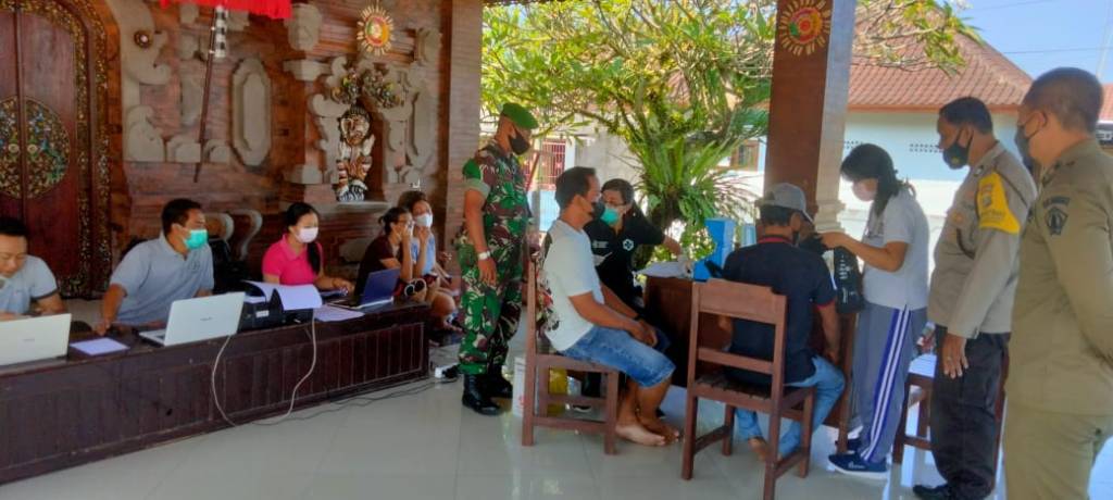 Terpantau hari ini vaksinasi yang digelar oleh petugas kesehatan dari Puskesmas I Jembrana berlangsung di Banjar Batuagung, Desa Batuagung Kecamatan Jembrana. Vaksinasi tersebut mendapat pendampingan dan pengamanan oleh Babinsa dan Bhabinkamtibmas, Selasa (05/07/2022)