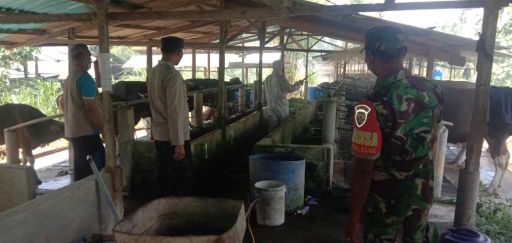Jembrana – Pencegahan secara preventif dalam mengantisipasi penyakit kuku dan mulut (PMK) dilakukan oleh Kodim 1617/Jembrana yang bersinergi dengan Dinas Pertanian dan Pangan Kabupaten Jembrana dengan melakukan penyemprotan disinfektan diberbagai kandang milik warga. Penyemprotan disinfektan dilakukan dengan sistem jemput bola dimana petugas mendatangi langsung ternak milik warga.