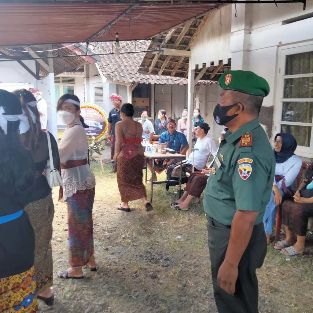 Jembrana – Danramil 1617-01/Negara Kapten Chb. Drs Karyanto bersama Anggota menghadiri upacara pengabenan Alm. Letkol Cpl (Purn) I Ketut Putra yang merupakan salah satu Purnawirawan TNI-AD, Kamis (04/08/2022)