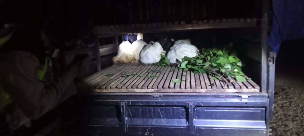 “Kita sempat mencurigai adanya satu mobil pick up yang ditutupi terpal, setelah dilakukan pemeriksaan ternyata didalamnya kita temukan sebanyak 6 ekor kambing,” Jelas Serda Adam