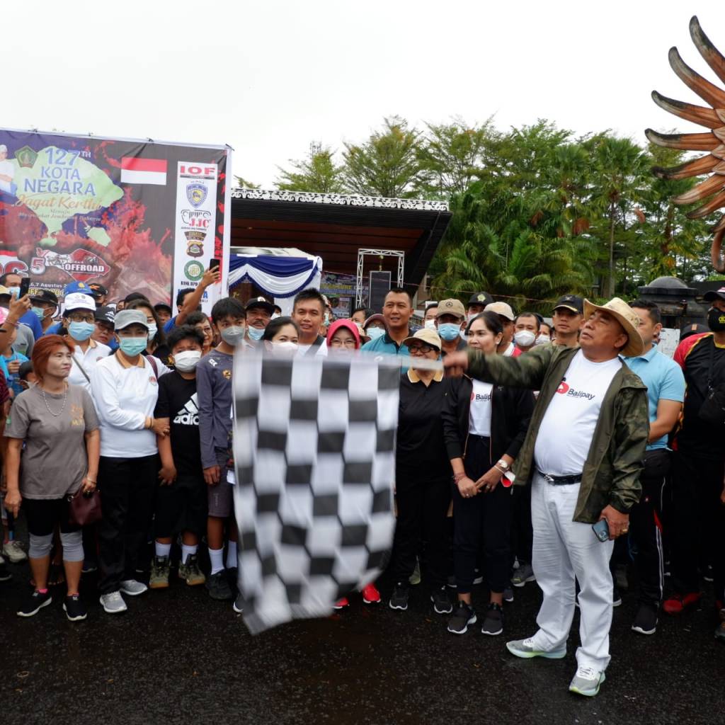 Jembrana – Kodim 1617/Jembrana turut memeriahkan jalan santai dalam rangka HUT Kota Negara Ke 127 Tahun dan HUT RI ke 77. Dilepas langsung oleh Bupati Jembrana I Nengah Tamba, S.H dengan didampingi Forkopimda Kabupaten Jembrana di titik start halaman Gedung Kesenian Dr Ir Soekarno, Minggu (07/08/2022)