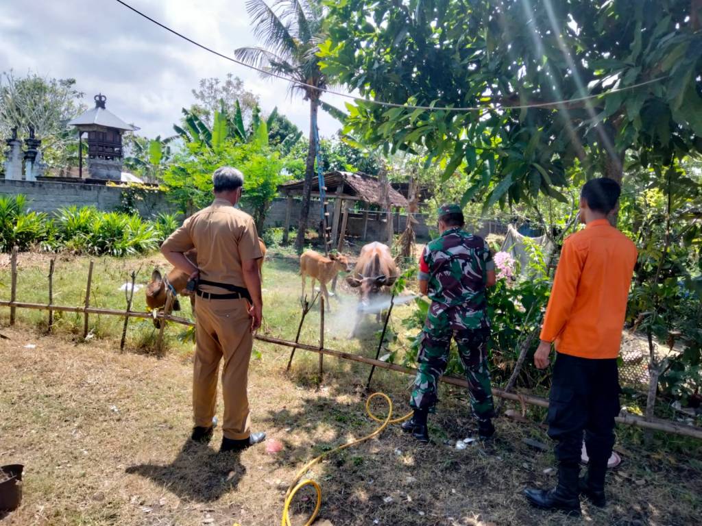 “Kita terus berupaya melakukan tindakan pencegahan secara dini terhadap adanya wabah PMK dengan melakukan spraying disinfektan terhadap ternak maupun kandang warga,” lanjutnya