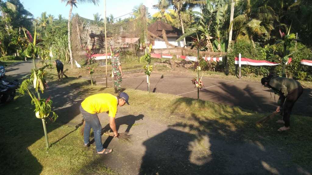 Jembrana – Aksi peduli terhadap kebersihan lingkungan dalam menyambut HUT Kemerdekaan RI Ke 77 Tahun dilakukan oleh Babinsa Yehembang Koramil 1617-02/Mendoyo Serda Joko Sampurno. Aksi dilakukan dengan pembabatan rumput liar dan pembersihan sampah bersama dengan Mahasiswa KKN Universitas Udayana dan Kelian Banjar serta warga Banjar Kaleran Kauh, Desa Yejembang, Selasa (16/08/2022)