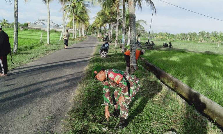 Jembrana – Gotong royong merupakan salah satu ciri khas masyarakat dalam menyelesaikan suatu pekerjaan, sehingga seberat apapun pekerjaan akan terasa ringan. Selain itu dengan semangat gotong royong akan memupuk rasa kekeluargaan dan jiwa kebersamaan yang kuat sehingga kemanunggalan TNI dengan rakyat akan terwujud