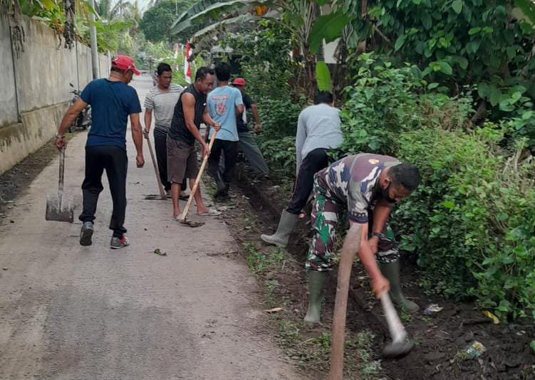 Jembrana – Aksi kepedulian terhadap kebersihan lingkungan dilakukan oleh Babinsa Pohsanten, Koramil 02/Mendoyo, Kodim 1617/ Jembrana. Bersama dengan warga binaan, Babinsa Pohsanten Pelda IB Priada melaksanakan gotong royong pembersihan di sepanjang jalan Banjar Munduk, Desa Pohsanten, Kecamatan Mendoyo, Minggu (4/9).