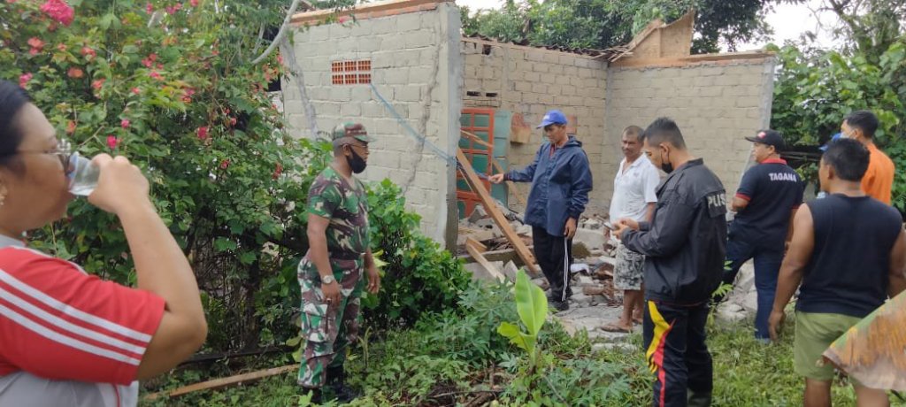 Mendengar informasi adanya rumah milik salah seorang warganya yang roboh, Babinsa Batu Agung Koramil 1617-01/Negara, Kodim 1617/Jembrana Pelda I Nyoman Suarken turun langsung ke lokasi kejadian, Minggu (11/9).