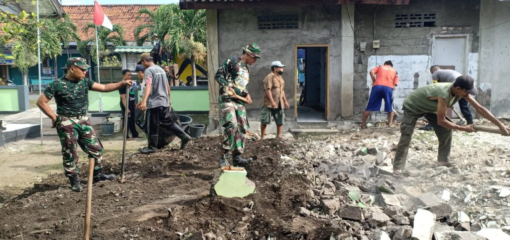 Jembrana – Hari libur dimanfaatkan Anggota Koramil 1617-03/Melaya bersama warga melakukan aksi kerja bakti pembersihan lingkungan. Kerja bhakti Pembersihan lingkungan dilakukan di Areal Perkantoran Kelurahan dan Pos Ramil 1617-03/Gilimanuk, Minggu (18/9).