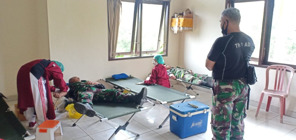 Pgs. Danramil 1617-03/Melaya Lettu Inf I Made Sujana Arianta bersama anggota Koramil 1617-03/Melaya. Dikesempatan tersebut Lettu Inf I Made Sujana bersama anggotanya turut menyumbangkan sekantong darahnya. Sebelum dilaksanakan pengambilan darah para pendonor menjalani serangkaian pemeriksaan kesehatan untuk bisa menyumbangkan darahnya.