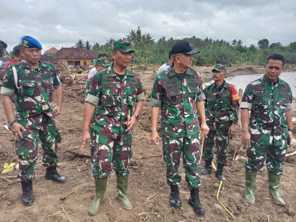 Jembrana – Dandim 1617/Jembrana Letkol Inf Teguh Dwi Raharja, S.Sos mendampingi kunjungan Danrem 163/Wira Satya Brigjen TNI Choirul Anam, S.E.,M.M. Kedatangan Danrem 163/Wira Satya dalam rangka meninjau langsung lokasi terjadinya banjir yang melanda wilayah Kabupaten Jembrana, Jumat (21/10/2022)