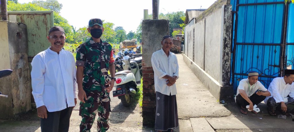 Jembrana – Ratusan umat Muslim Kelurahan Loloan barat menggelar perayaan peringatan Maulid Nabi Muhammad SAW 1444 H di Musholla “Aminul Ummah” Lingkungan Terusan, Kelurahan Loloan Barat, Kecamatan Negara, Kabupaten Jembrana. Saat perayaan peringatan Maulid Nabi Muhammad SAW tersebut, Babinsa pun hadir ditengah tengah warga. Kehadiran Babinsa Loloan Barat Koramil 1617-01/Negara guna memantau sekaligus mengamankan pelaksanaan perayaan peringatan Maulid Nabi Muhammad SAW 1444 H yang digelar oleh warga. Pengamanan dilakukan bersinergi dengan Bhabinkamtibmas dan Banser, Minggu (23/10/2022)