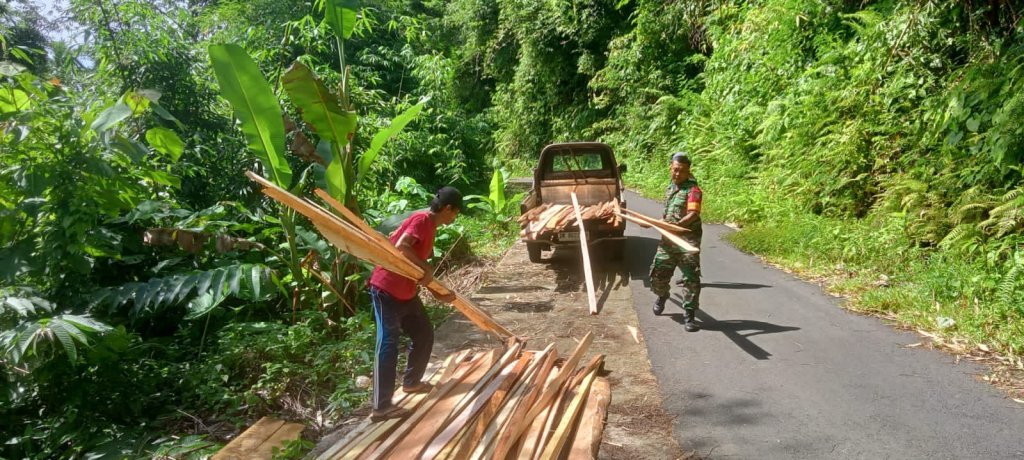 Jembrana – Warga Banjar Sekar Kejula Kelod, Desa Yehembang Kauh, Kecamatan Mendoyo, Kabupaten Jembrana difasilitasi oleh Babinsa Yehembang Kauh Koramil 1617-02/Mendoyo Serda Zainal Efendi membuat jembatan darurat pengganti jembatan plat deker yang hanyut dibawa banjir tempo lalu bersamaan dengan Jembatan besar permanen penghubung Desa Yehembang Kauh dengan Desa Yehembang, Jumat (02/12).