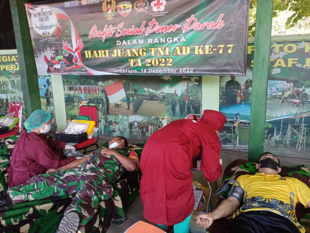 Dengan melibatkan lintas instansi sebagai pendonor, bakti sosial memperingati Hari Juang TNI AD Ke 77 Tahun diikuti oleh Anggota Kodim 1617/Jembrana beserta Koramil Jajaran, Anggota Yonif Mekanis 741/GN, Anggota Polres Jembrana, Anggota Subdenpom IX/3-2 Negara, Anggota Yon C Brimob Gilimanuk, Anggota Minvetcad IX/2-3/Negara, Anggota Pol Airud Polres Jembrana, Pegawai Rutan Kelas II B Negara, Pegawai BRI Cabang Negara, Persit Kartika Chandra Kirana Cabang XXXVI Dim 1617/Jembrana dan Anggota FKPPI Kabupaten Jembrana.