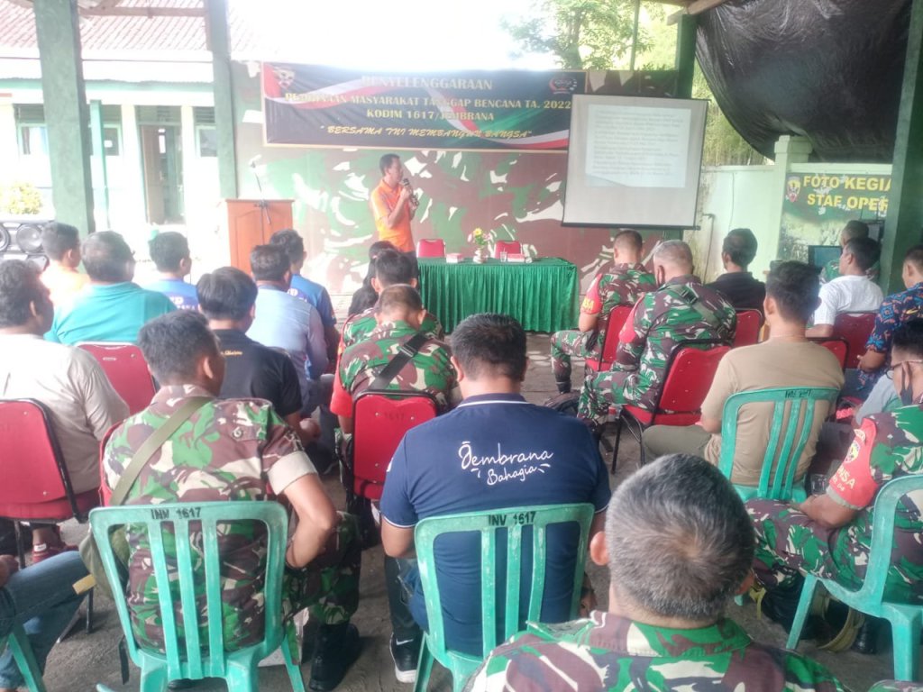Dengan mengambil tema “Bersama TNI Membangun Bangsa”, kegiatan pembinaan masyarakat tanggap bencana Tahun 2022 dihadiri oleh Pasiter Kodim 1617/Jembrana Kapten Inf Tri Winarto, Para Babinsa Jajaran Kodim 1617/Jembrana, Anggota BPBD Kabupaten Jembrana, Tokoh Masyarakat, Tokoh Adat dan Tokoh Agama seKabupaten Jembrana. Acara juga dihadiri oleh Plt. Kasi Rekontruksi dan rehabilitasi BPBD Kabupaten Jembrana I Km Ratawan S.I.P selaku narasumber.