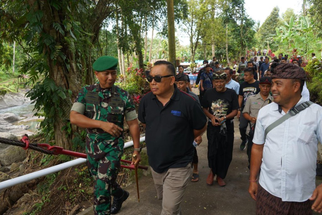 Jembrana – Komandan Kodim 1617/Jembrana Letkol Inf Teguh Dwi Raharja, S.Sos menghadiri Peresmian Jembatan Merah Sungai Gelar yang terletak di Banjar Palungan Batu, Desa Batuagung, Kecamatan Jembrana, Kabupaten Jembrana, Sabtu (31/12/2022).