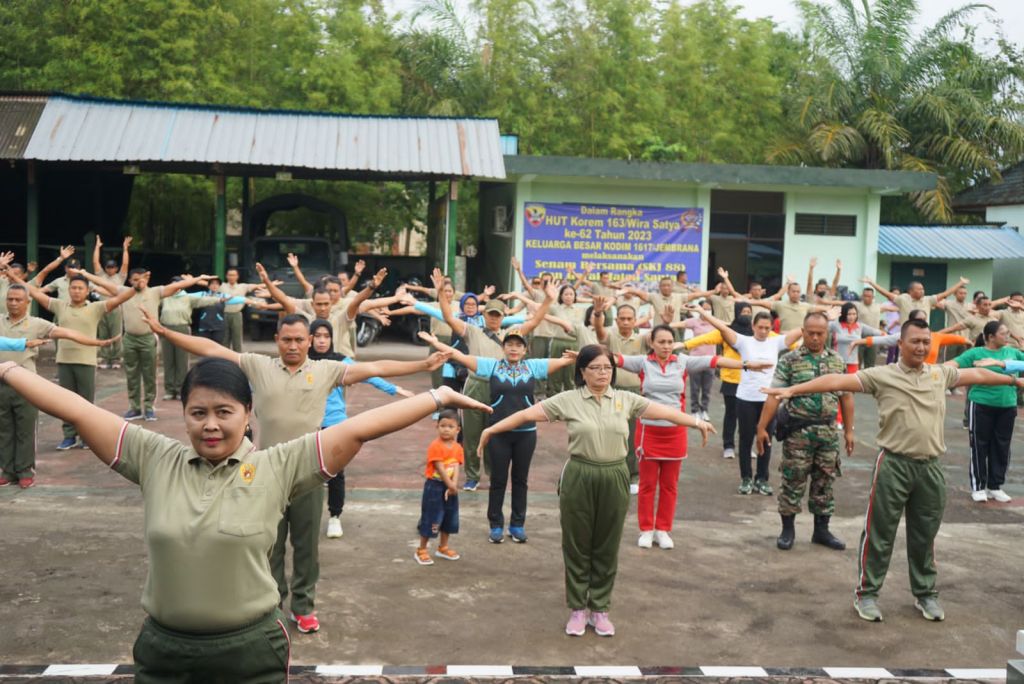 Jembrana – Dalam rangka memperingati HUT Korem 163/Wira Satya yang ke 62 yang jatuh pada tanggal 24 Februari 2023, Komandan Kodim 1617 Jembrana Letkol Inf Teguh Dwi Raharja S.Sos mengadakan kegiatan Senam SKJ 88, Jalan santai dan Cek Kesehatan yang bertempat di Lapangan Kodim 1617/Jembrana, Jalan Ngurah Rai, Kelurahan Dauhwaru, Kecamatan Jembrana, Jumat (10/02/2023).