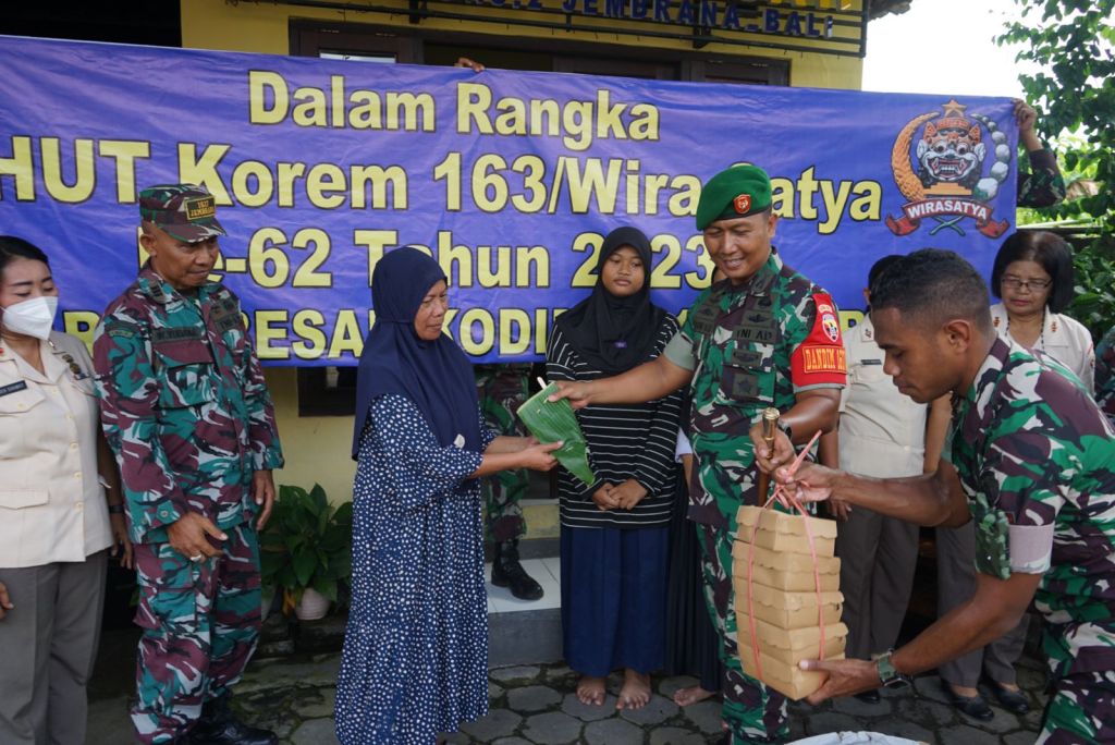 Dalam penyampaiannya Dandim 1617/Jembrana Letkol Inf Teguh Dwi Raharja, S.Sos menyampaikan bahwa kegiatan ini merupakan kegiatan sosial guna membantu sesama atau warga kita yang kurang mampu, dan sekaligus sebagai bentuk rasa syukur atas pencapaian Korem 163/WSA dalam hal ini Kodim 1617/Jembrana sebagai Komando Kewilayahan yang ada di daerah Kabupaten Jembrana.