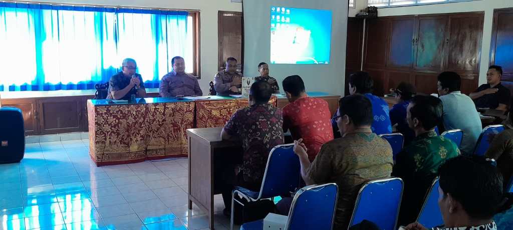 Jembrana – Danramil 1617-02/Mendoyo Mayor Inf (Har) Agus Muhid memberikan Sosialisasi Wawasan Kebangsaan dan Ketahanan Pangan Nasional kepada para Kelian Dinas dan para Kaling seKecamatan Mendoyo, Kegiatan tersebut dilaksanakan di Kantor Camat Mendoyo, Banjar Dauh Pasar, Desa Pergung, Kecamatan Mendoyo, Kabupaten Jembrana, Selasa (18/04/2023).