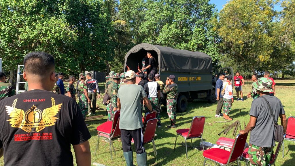 Jembrana – Menjelang penanaman Mangrove yang akan dilaksanakan serentak di seluruh Indonesia, Personil Kodim 1617/ Jembrana melaksanakan berbagai penyiapan mulai dari mendirikan tenda serbaguna, penyiapan bibit, pemasangan banner dan perlengkapan lainnya. Kegiatan tersebut dilaksanakan di wilayah Kodim 1617/Jembrana tepatnya di Taman Mangrove Desa Tuwed, Kecamatan Melaya, Kabupaten Jembrana, Minggu (14/05/2023).