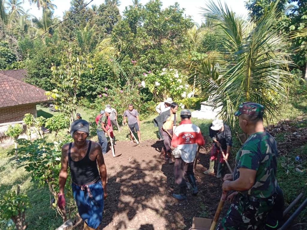 Jembrana – Peduli terhadap kesulitan warga binaan, Babinsa yang merupakan ujung tombak satuan yang bersentuhan langsung dengan masyarakat di wilayah tanggung jawabnya, dalam hal ini Babinsa Desa Candikusuma Koramil 1617-03/Melaya, Serka I Dewa Budi Wilantara bersama aparat Desa, para tokoh dan masyarakat Banjar Moding melaksanakan kegiatan Gotong Royong pembuatan akses jalan keluar dari rumah bapak I Kadek Karnawa menuju jalan raya. Kegiatan Gotong Royong tersebut dilaksanakan di Banjar Moding, Desa Candikusuma, Kecamatan Melaya, Kabupaten Jembrana, Minggu (28/05/2023).