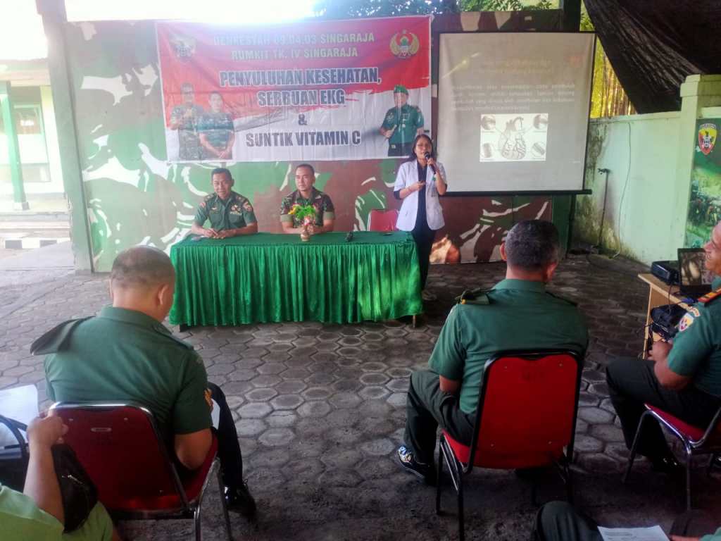 Jembrana – Kodim 1617/Jembrana Gelar Penyuluhan Kesehatan, Serbuan EKG dan Suntik Vitamin C kepada seluruh anggotanya baik militer maupun PNS serta anggota Persit KCK Cabang XXXVI Kodim 1617/Jembrana, yang dilakukan oleh Tim Kesehatan dari Denkesyah 09.04.03 Singaraja, Rumkit TK. IV Singaraja. Kegiatan dilaksanakan di Makodim 1617/Jembrana, Jalan Ngurah Rai No 135, Kelurahan Dauhwaru, Kecamatan Jembrana, Kabupaten Jembrana. Selasa (27/06/2023)