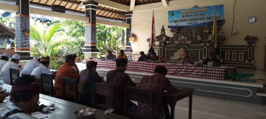 Jembrana – Babinsa Desa Pergung Serda Made Budi Ardita Hadiri Rapat Pertanggungjawaban Dalam Rangka Puja Wali Pura Puseh, Ngusabha Desa Lan Ngusabha Nini Tahun 2023 Pura Desa Adat Pergung yang jatuh pada Tilem Sasih Kasha tanggal 17 Juli 2023. Rapat dilaksanakan di Wantilan Pure Puseh Banjar Petapan Kelod, Desa Pergung, Kecamatan Mendoyo, Kabupaten Jembrana. Jumat (30/06/2023).