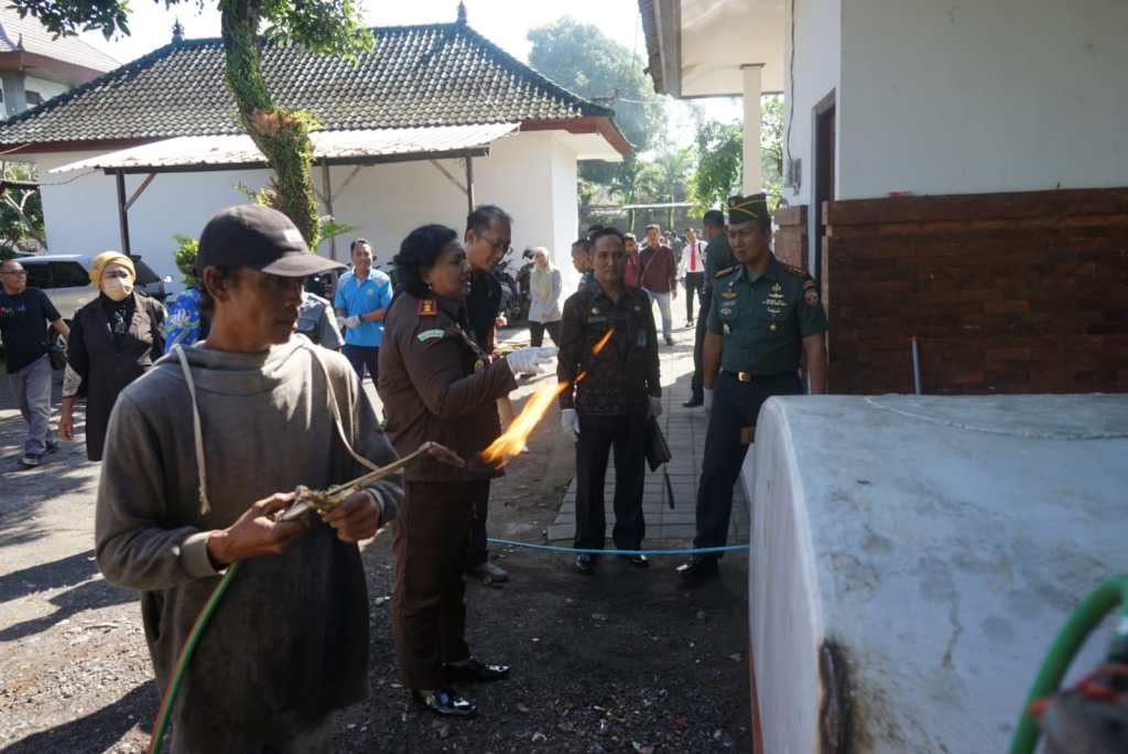 Kegiatan dilanjutkan dengan Peninjauan barang bukti oleh Kepala Kejaksaan Negeri Jembrana didampingi oleh Dandim 1617/Jembrana serta tamu undangan lainnya dan dilanjutkan Pemusnahan Barang Bukti dengan cara di Blender dan di bakar.