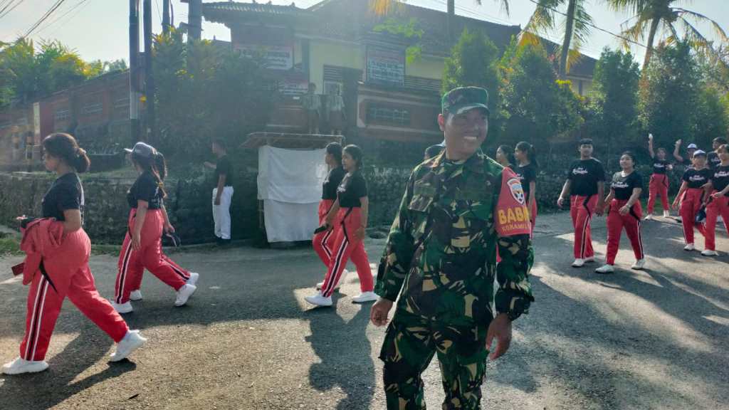 Jembrana – Babinsa Desa Penyaringan Koramil 1617-02/Mendoyo Sertu I Nyoman Agus Mahendra bersinergi dengan Babhinkamtibmas dan Polprades turut mengamankan kegiatan jalan sehat dalam rangka memperingati HUT ke 12 SMA Negeri 2 Mendoyo, di Banjar Anyar Tengah, Desa Penyaringan, Kecamatan Mendoyo, Kabupaten Jembrana. Selasa (25/07/2023).