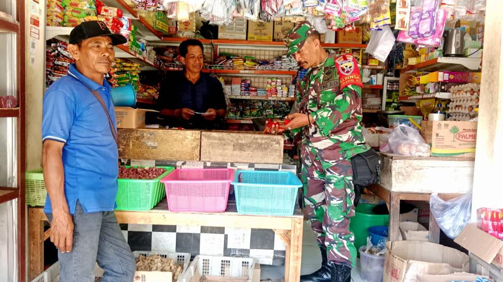 Jembrana – Menjelang Hari Raya Galungan dan Kuningan Babinsa Kelurahan Tegal Cangkring, Serda Suwardi, terjun langsung melakukan pemantauan dan pengecekan harga Kebutuhan Bahan Pokok di Pasar Umum Tegalcangkring, Kecamatan Mendoyo, Kabupaten Jembrana. Senin (31/07/2023).