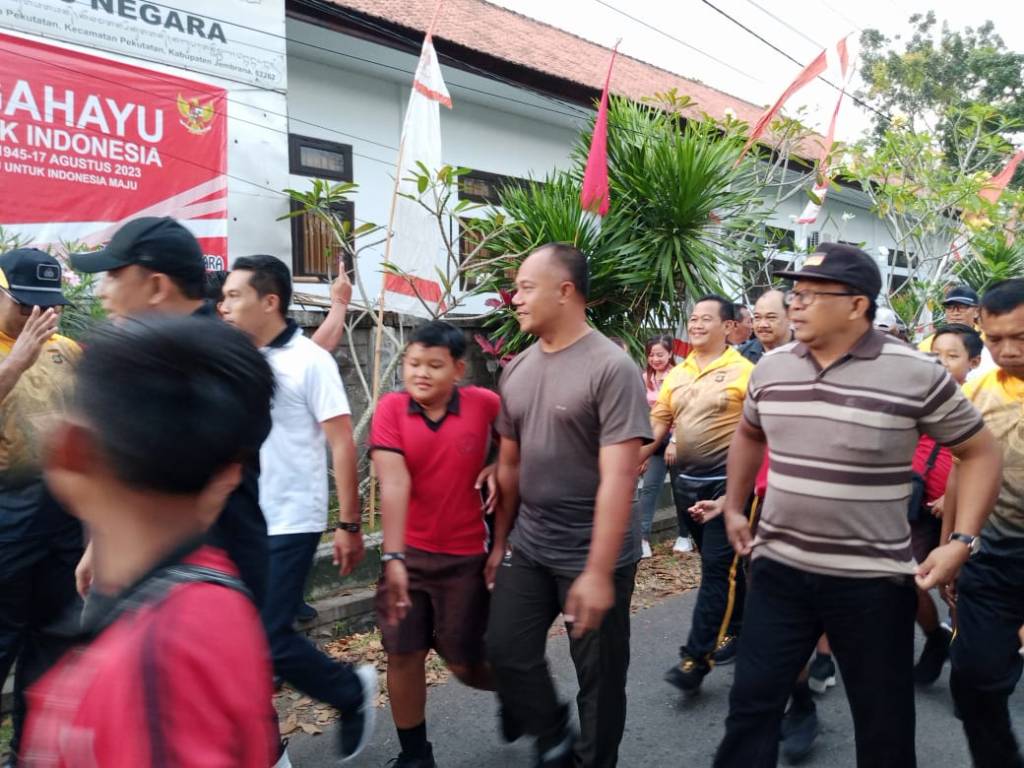 Jembrana – Dalam rangka memeriahkan HUT Kota Negara Ke-128 dan HUT Kemerdekaan RI Ke-78 Tahun 2023, Anggota Koramil 1617-04/Pekutatan mengikuti kegiatan jalan santai yang mengambil start di GOR “Satya Mandala” Pekutatan, Banjar Yehkuning, Desa Pekutatan, Kecamatan Pekutatan, Kabupaten Jembrana. Sabtu (05/08/2023).
