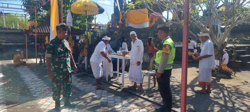 Jembrana – Ditengah aktivitas warga saat melaksanakan persembahyangan Hari Raya Kuningan, Babinsa Kodim 1617/Jembrana turut hadir ditengah warga. Kehadiran Babinsa tersebut untuk memberi pengamanan bersinergi dengan Bhabinkamtibmas, Pecalang dan Aparat terkait sehingga persembahyangan dapat berjalan dengan aman dan lancar.