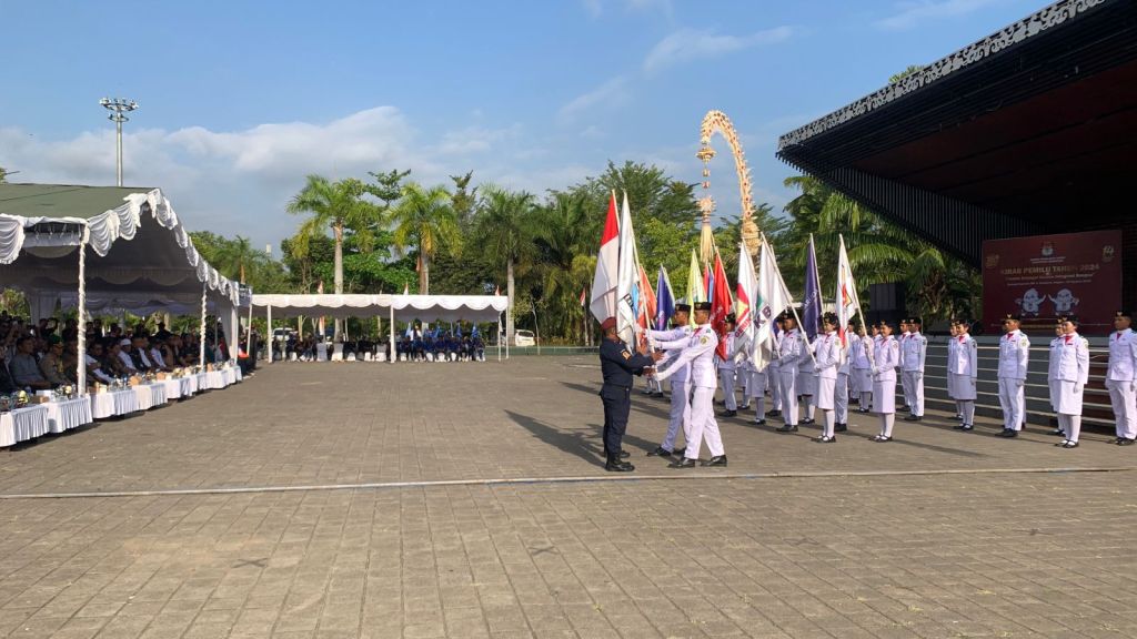 Jembrana – Dandim 1617/Jembrana Letkol Inf Teguh Dwi Raharja S.Sos hadiri kegiatan Kirab Serah Terima Bendera Partai Politik Peserta Pemilu 2024 dengan tema “Pemilu Sebagai Sarana Integrasi Bangsa” oleh KPUD Buleleng, bertempat di Gedung Kesenian Dr. Ir. Soekarno, Kelurahan Dauhwaru, Kecamatan Jembrana, Kabupaten Jembrana. Rabu (30/08/2023).