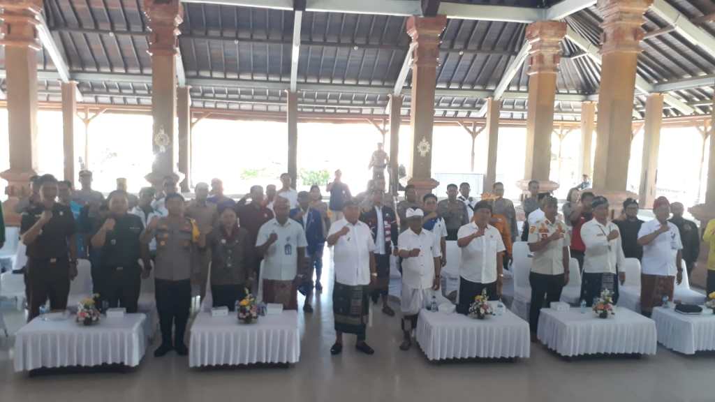 Jembrana – Bertempat di Wantilan Pura Jagatnatha, Kelurahan Dauhwaru, Kecamatan Jembrana, Kabupaten Jembrana Kasdim 1617/Jembrana Mayor Inf I Gede Putu Wira Mahardika menghadiri kegiatan Deklarasi Damai Peserta Pemilu Tahun 2024 dalam rangka Mewujudkan Situasi Kamtibmas yang Kondusif di Kabupaten Jembrana dengan tema “Wujudkan Pemilu Tahun 2024 Yang Aman Damai dan Kondusif” yang dibuka langsung oleh Kapolres Jembrana, AKBP I Dewa Gde Juliana, S.H., S.I.K., M.I.K. Kamis (07/09/2023).