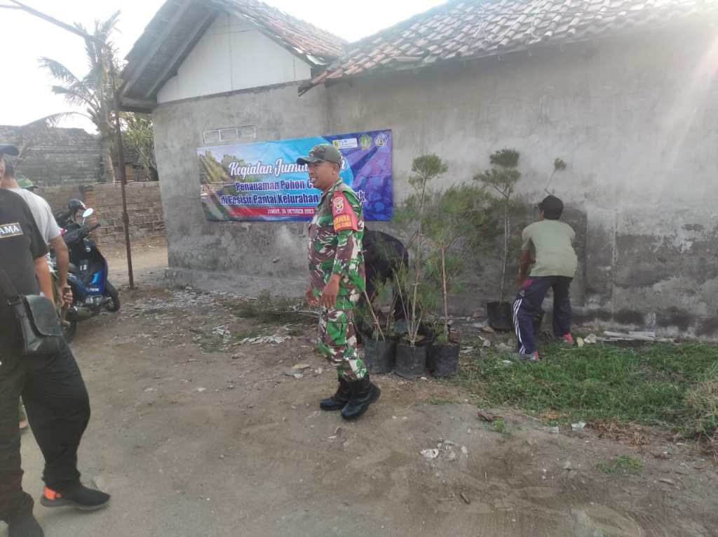 Jembrana – Babinsa Kelurahan Gilimanuk, Koramil 1617-03/Melaya, Sertu Moh. Adam bersama Aparatur Kelurahan Gilimanuk dan Instansi terkait lainnya melakukan aksi Jumat bersih dengan gotong royong membersihkan sampah plastik dan daun2 kering yang ada di Pesisir pantai dilanjutkan dengan penanaman pohon Cemara, di Lingkungan Jineng Agung, Kelurahan Gilimanuk, Kecamatan Melaya, Kabupaten Jembrana. Jumat (06/10/2023).