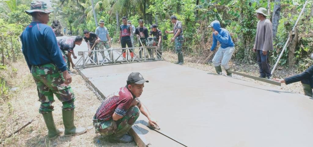 Dijelaskan oleh Komandan SSK TMMD Lettu Inf I Made Sujana Arianta saat ini personel Satgas mulai fokus bekerja pada pengecoran rabat beton. Untuk memaksimalkan hasil kerja personel dibagi dalam beberapa kelompok tugas mulai dari penyiapan material, penyiapan bahan adonan maupun pada titik pengecoran.