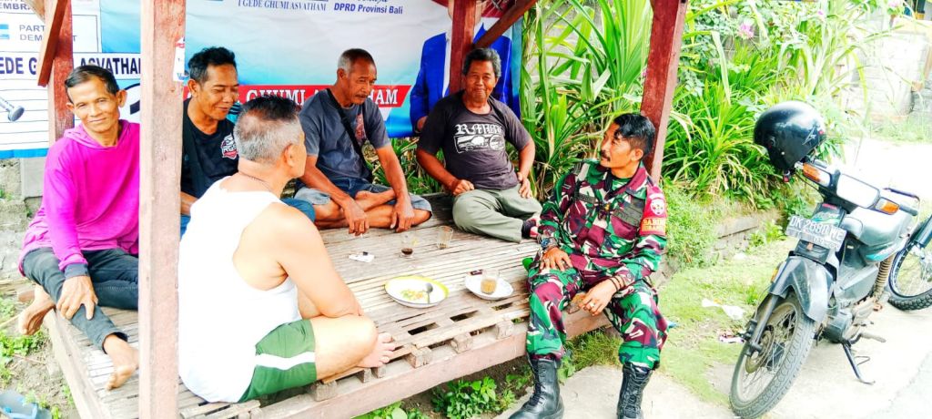 Jembrana – Menjalin hubungan silaturrahmi yang baik dengan warga binaan adalah merupakan salah satu tugas pokok Babinsa. Salah satunya yaitu dengan melakukan komunikasi sosial dalam menciptakan interaksi serta kekompakan antara Babinsa dan warga binaannya.