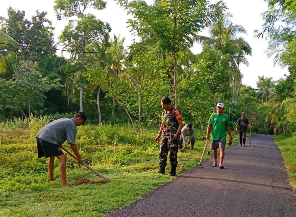 Jembrana – Babinsa Desa Mendoyo Dauh Tukad Serda Suwardi bersama-sama dengan warga masyarakat Banjar Ngoneng Minggu, tanggal 14 Januari 2024 pukul 06.10 Wita, bertempat diwilayah Banjar Ngoneng Ds. Mendoyo Dauh Tukad, Kecamatan Mendoyo, Jembrana.