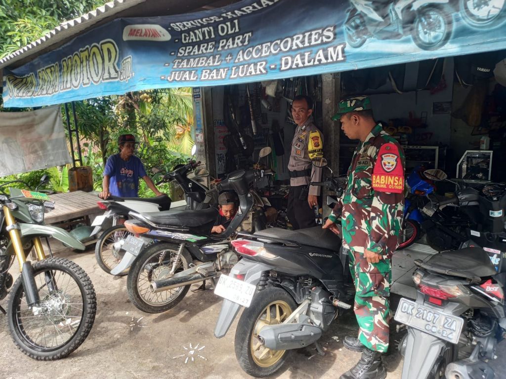 Jembrana – Dalam rangka menjaga keamanan dan ketertiban masyarakat karena masih adanya penggunaan knalpot brong, Babinsa Kodim 1617/Jembrana Koptu Sigit Riyanto Koramil 01/Negara bersama Bhabinkamtibmas Bripka I Gede Tamba melakukan sosialisasi dan edukasi larangan penggunaan knalpot brong di sejumlah bengkel sepeda motor bertempat di Lingkungan Dewasana dan Pancardawa Kelurahan Pendem Kecamatan Jembrana Kabupaten Jembrana. Senin (22/01/2024).