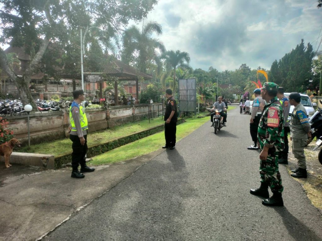 Jembrana- Guna memastikan situasi aman dan kondusif, Babinsa Desa Blimbingsari Koramil 1617/Melaya Sertu Kadek Wirawanta bersama Babinkamtibmas Aiptu Wyn Suda dan Polprades Wayan Janayasa dan Relawan gereja Melaksanakan pemantaun dan pengamanan Ibadah Jumat bertempat di GKPB Gereja Pniel Blimbingsari dan Gereja Immanuel Ambyarsari Desa Blimbingsari, Kecamatan Melaya, Kabupaten Jembrana, Jumat (29/03).